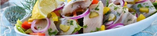 Perhaps one of the most iconic dishes to represent Denmark would be herring – pickled herring, in particular. Pickled herring is a Scandinavian delicacy, and dates back to Medieval times, as this was an efficient way to transport fish and keep it edible over long periods of time. It is usually served during Lent, and is eaten with dark ry bread, crip bread, sour cream, and potatoes. When served during Christmas, Easter, or Midsummer, it usually eaten alongside akvavit, a spirit flavored with carraway and dill. This recipe will show you how you can pickle your own herring at home.